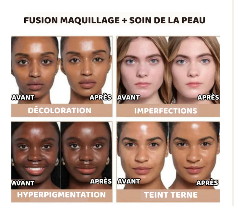 Il unifie le teint, minimise les imperfections et laisse une finition lisse et homogène.